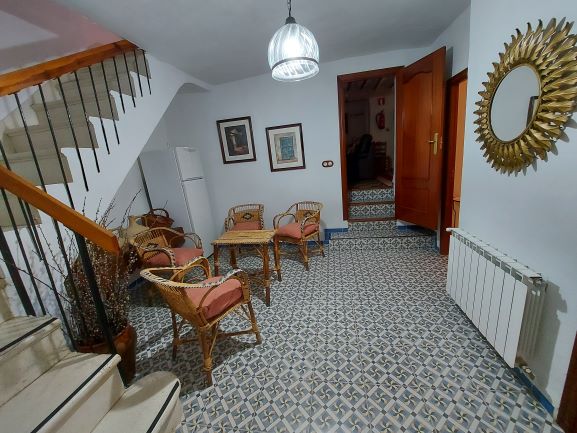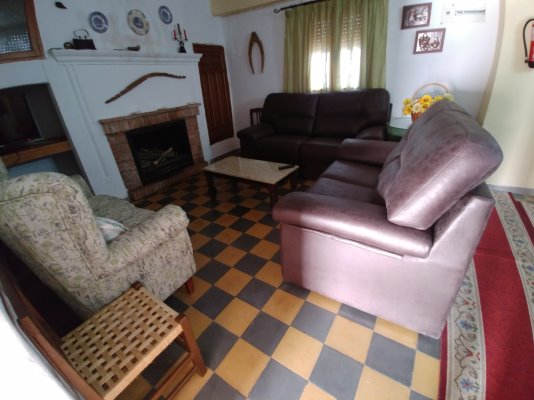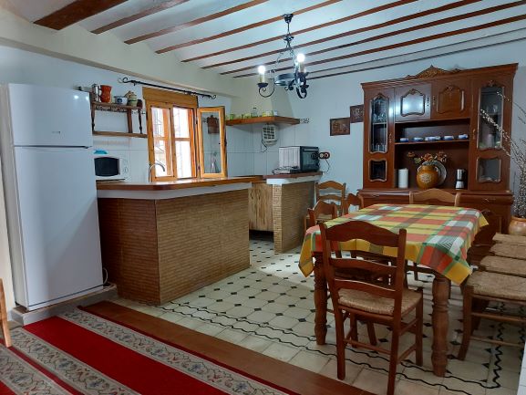 La Casa dispone de 2 plantas, con un total de 5 dormitorios: Planta Baja: Consta de un dormitorio con dos camas de 90, baño completo, hall, salón comedor con cocina americana ( lavavajillas, microondas, vitrocerámica, horno y frigorífico y menaje completo para 10 personas). Salón con 3 sofás, amplia mesa, chimenea de leña, aire acondicionado y televisión.