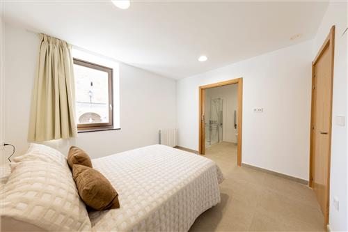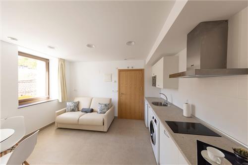 Apartamento Aitzulo (2+2 personas): Este luminoso apartamento de 62 metros cuadrados ubicado en la planta baja cuenta con una pequeña cocina americana totalmente equipada para que podáis cocinar cuando y como queráis. Está adaptado para personas con movilidad reducida. El comedor consta de TV plana y sofá cama para dos personas. El dormitorio al que se accede desde el salón, tiene una cama de matrimonio y un amplio armario ropero. Al baño completamente adaptado se accede directamente desde la habitación.