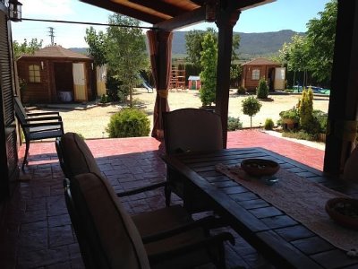 Casa Rural de madera con un precioso jardín, para pasar unos días inolvidables en familia o con amigos disfrutando de la tranquilidad de la pedan?a del Salse . La "CABAÑA EL SALSE", se encuentra en la pedanía El Salse, situada a 1 km de la población de Beneixama. Beneixama es un precioso pueblo del interior de la provincia de Alicante, rodeado por un grandioso valle y en plena naturaleza. Esta finca est? situada en un enclave estrat?gico y con unas vistas espectaculares a la sierra, en especial a nuestra famosa monta?a, llamada: El Cabe?o Gordo". La casa de madera principal (de una gran calidad), est? compuesta por dos habitaciones (una de matrimonio y otra doble), un cuarto de ba?o, una cocina-office (integrada en el sal?n), y un gran porche con amplia mesa y sillones para poder disfrutar de su estancia y relajarse. Adem?s, en la parcela podemos encontrar: 3 caba?as de madera, una de ellas es la "Caba?a Amapola", con una cama de matrimonio. La Caba?a Infantil, es un espacio ideal para ellos, con una litera muy c?moda, televisi?n, juegos (cuentos, puzzles, juego bolos, petanca...). Al lado de las caba?as dormitorios, encontramos otra caba?a que es un amplio ba?o completo. Disponemos de otra caba?a m?s peque?a , que es la que usamos de almac?n. Barbacoa grande, piscina, zona infantil de juegos (tobog?n, columpios, castillo, caseta infantil...) La casa est? totalmente equipada y se incluye toda la ropa de hogar necesaria: s?banas, toallas, manteles... Bajo previa petici?n del cliente, les proporcionar?amos ( cuna-parque, trona...). Est? situada en una finca agr?cola con grandes paisajes y rodeada de olivos.