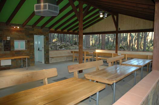 Amplias cabañas familiares, hasta 17, donde sus hijos podrán jugar y correr en 7 hectáreas de pinar centenario sin problema ni riesgos de coches ni ruidos. Parque infantil, mini-golf, padel, canchas baloncesto, ping pong, billar, biblioteca y filmoteca.