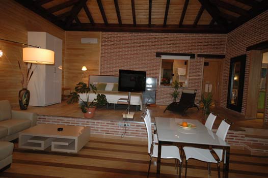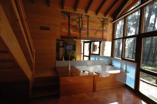Una forma diferente de disfrutar las vacaciones o unos días de descanso en perfecta sintonía con la naturaleza. A una hora de Madrid. Este atractivo complejo cuenta con 15 cabañas suites que harán su estancia en pareja inolvidable, disponen de bañera de hidromasaje doble con cromoterapia; IDEAL PARA IR CON NIÑOS.