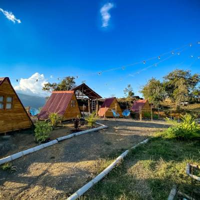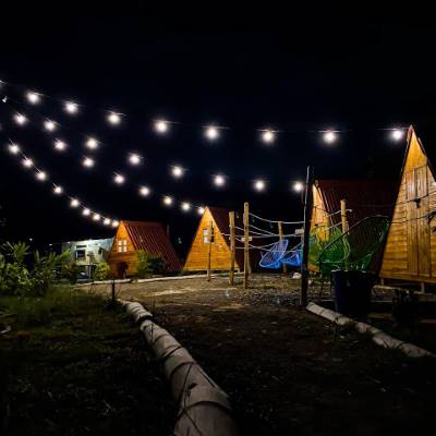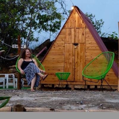 Hospedaje en camping y glamping. Duchas, baños, electricidad, zona de fogatas, zona de hamacas, tienda, alquiler de bicicletas, alquiler de colchonetas y carpas.