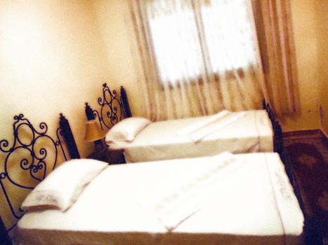 Habitación doble: Amplias y bien ventilada, con ventana que se abre, cama doble, salón y cuarto de baño contiguo. Aire acondicionado reversible. TV, Wi-Fi gratuito