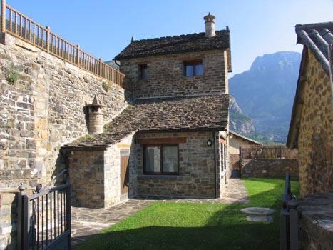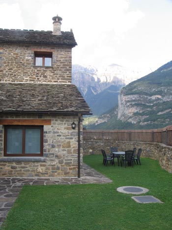 Se ubica en una tranquila zona del pueblo de Torla, en una situación privilegiada con espectaculares vistas al pueblo y a la montaña, destacando las vistas a las paredes de Mondarruego.