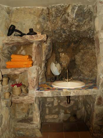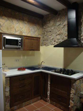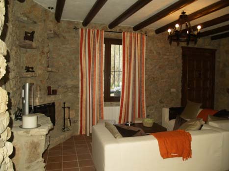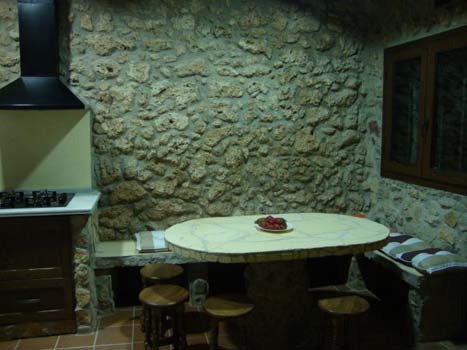 La casa cuenta con dos plantas, en la inferior hay un salón con chimenea, hall de entrada, dormitorio, cocina y cuarto de baño excavado en la roca donde observarán el proceso natural de filtrado de la roca cuando llueve. Accesible para discapacitados. En la 2ª planta 3 dormitorios, un baño con ducha de hidromasaje y un recibidor. Construida en piedra, con muros de 1 m. de ancho, techos altos con vigas de madera natural y fósiles en muchos de los toscos que la componen. Todas las habitaciones son exteriores. En la casa todo es piedra tanto en el interior como en el exterior, incluido el mobiliario.