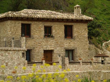 Nuestra casa rural, se encuentra situada en pleno corredor verde del río Pesquera, en Algarinejo (Granada). Es una casa de dos plantas, cada una de ellas de 80 m², en la planta inferior hay un salón, hall de entrada, dormitorio, cocina y cuarto de baño excavado en la roca y muestra de ello es que podrán observar el proceso natural de filtrado de la roca cuando llueve. Este último adaptado para discapacitados. En la segunda planta encontrarán 3 dormitorios y un baño con ducha de hidromasaje y un recibidor amplio y espacioso. Toda la casa está hecha de piedra y tosco natural con muros de 1 metro de ancho y techos altos con vigas de madera natural en los mismos, es interesante poder observar fósiles en muchos de los toscos que la componen. Todas las habitaciones son exteriores salvo el cuarto de baño de la planta inferior por estar excavado en la roca.