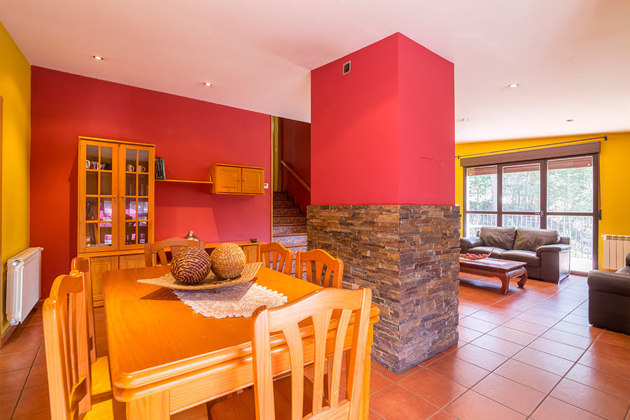 Nos encontramos en el centro del Parque Natural "Cañón del Rio Lobos" en San Leonardo de Yagüe, ilustre villa que cuenta con su castillo del siglo XVI, único en la traza abaluartada y su iglesia de éstilo herreriano, el pueblo se encuentra totalmente auto abastecido de tiendas, bares, restaurantes, centro de salud disponible las 24 horas, piscinas, rio, merenderos con asadores en el pinar, campo de golf, etc. Entre sus innumerables atractivos está la naturaleza, ya que se encuentra en el corazón de pinares, donde podras dar largos paseos y participar en la recolecta de setas y hongos en temporada, además de degustarlos en sus típicas jornadas gastronómicas micológicas. La casa rural Fuente del Pino dispone de una cocina totalmente equipada para que te encuentres como en tu propio hogar y no eches a faltar de nada: vitrocerámica, horno eléctrico, lavadora, microondas, frigorífico, lavavajillas,etc... La casa dispone de 6 plazas, distribuidas en tres habitaciones con dos baños completos con secador de pelo. El salón comedor supergrande con chimenea y piedra caravista en dos de sus paredes, cuenta con dos juegos de sofás, uno de ellos cama. Cocina totalmente equipada, esmerada lencería con sábanas blancas, bordadas o con puntillas, las toallas tambien. Entre otras actividades nuestros clientes podrán practicar senderismo, caza, pesca, montar a caballo, paseos en quads y mountan-bike, recolecta de setas y hongos, etc.