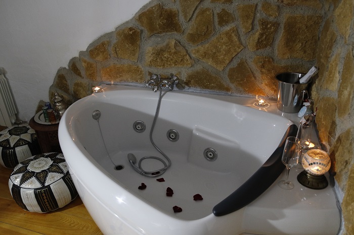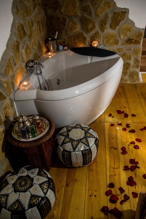 Consta de una habitación con cama de matrimonio; baño con ducha; cocina abierta equipada, con comedor y salón con chimenea; una terraza con muebles de jardín para disfrutar de las noches estrelladas; y una habitación de relax con bañera de hidromasaje y un rincón del té. Un lugar precioso para sorprender a tu pareja con una escapada romántica.