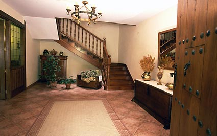 La entrada principal del caserío da paso a una hermosa sala de estar que cuenta con chimenea, TV, teléfono... Por otra parte se da paso a las escaleras que conducen hasta las habitaciones. Ibarre tiene un total de 4 habitaciones dobles y 4 individuales para clientes. Estas son dobles y cuentan, todas ellas con baño propio. Con todo lo anterior, Ibarre es también un lugar idóneo para reuniones de trabajo.