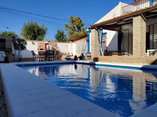 Extras: Garaje interior, se admiten mascotas y una variedad de servicios exclusivos para nuestros huéspedes. Diversión y entretenimiento en la villa: · Juegos de mesa para niños y adultos. · Librería con libros de todos los géneros para disfrutar de la lectura en un entorno único. · Videoconsolas para el entretenimiento de toda la familia. · Proyector con gran pantalla y portátil, ideal para noches de cine. · Bicicletas gratuitas para explorar el entorno natural. Experiencias únicas y aventura: Estamos preparando dos ciclomotores históricos Vespino con su documentación y seguro para que los huéspedes puedan recorrer la zona de manera original y nostálgica. Además, ofrecemos una Honda 650cc (servicio aparte) para aquellos que deseen una experiencia en moto por la comarca. Para los más aventureros, organizamos paquetes exclusivos con empresas colaboradoras: · Paseo en globo con bautismo aéreo. · Salto en paracaídas en el aeródromo más importante de Europa. · Rutas a caballo por los alrededores. · Puenting en Aznalcóllar. · Piragüismo y rutas en barco por el río Guadalquivir. · Tour gastronómico y flamenco en Sevilla, recorriendo bares y tabernas tradicionales con espectáculos en vivo de sevillanas, rumbas y flamenquito. · Amenitiz Especial para Nuestros Huéspedes Para que te sientas verdaderamente en casa desde el primer momento, al llegar a Casa Rural Villa Montecarmelo ofrecemos un amenitiz que incluye: Café, leche y Colacao.Infusiones y zumos. Agua, cervezas y refrescos. Máquina de café ubicada en la planta alta de los dormitorios. Ubicación y entorno privilegiado Casa Rural Villa Montecarmelo se encuentra en una urbanización tranquila, ideal para descansar y desconectar. En la zona hay: · Campo de fútbol y cancha de baloncesto. · Parque infantil en la plaza principal. · Gran piscina comunitaria y club social para vecinos (respetando normas de convivencia). · Ambiente relajado sin tráfico de coches, donde solo se escuchan los pájaros. Un lugar con duende y magia. Normas de la casa: · No se alquila para celebraciones, eventos ni grupos de jóvenes. Alojamiento ideal para familias, parejas y grupos que buscan tranquilidad y experiencias auténticas. - Reserva al mejor precio garantizado en nuestra web. Sumérgete en la esencia andaluza y vive una estancia inolvidable en Casa Rural Villa Montecarmelo. ¡Te esperamos para compartir momentos únicos en un entorno lleno de lujo, aventura y tradición!