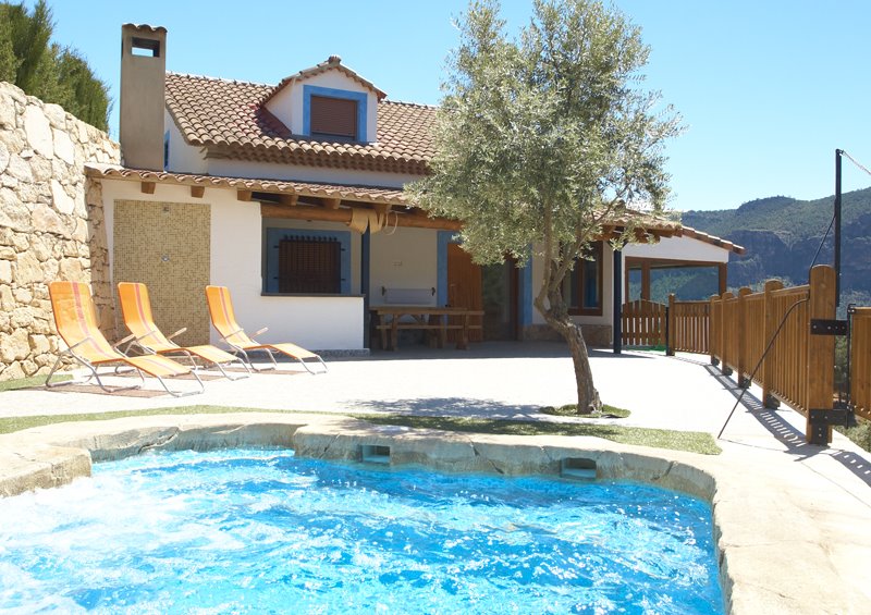 Las tres casas del complejo constan de dos plantas, siendo la planta superior una coqueta buhardilla con un gran ventanal mirando al valle del Segura. En la planta baja encontramos el amplio salón comedor con chimenea, gran mesa de comedor y cómodos sillones. Es una estancia muy acogedora, perfecta para divertirse en familia junto a la chimenea. Dispone de TV y DVD. Junto al salón y separada de el por una barra, la cocina completamente equipada, con frigorífico, lavavajillas, lavadora y microondas. Para descansar, en esta primera planta, las casas rurales cuentan con dos grandes dormitorios de matrimonio. En ellos hemos dispuesto para tu comodidad, sendos armarios, cómoda con butaca y un amplio cuarto de baño en cada uno de ellos. La planta superior es una gran buhardilla con balconada al salón y con suelos de madera. En ella, y separados por biombos, encontrarás tres ambientes realmente acogedores: un pequeño rincón de lectura con sofá cama y dos espacios separados con 4 camas. Completa esta segunda planta un coqueto cuarto de baño. Todas las casas disponen de barbacoa, porche amueblado y amplio jardín independientes. Casas rurales con todas las comodidades para hacer tus vacaciones más agradables.