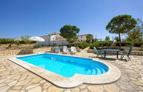 El cortijo "el Ciego" posee 2 salones totalmente equipados (con 2 televisores, chimenea, máquinas recreativas...), 9 dormitorios, 5 baños, cocina (menaje, microondas, vitrocerámica, frigorífico, lavadora, horno), piscina, porche, patio exterior.. El estilo interior es rustico decorado con mobiliario y objetos antiguos. La casa consta también de calefacción, agua caliente y una muy buena iluminación para su disfrute y confort.