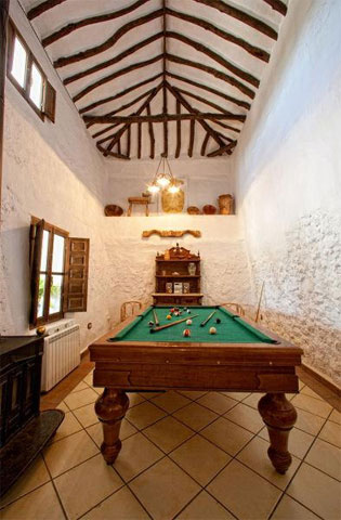 En uno de los salones tiene billar, mesa de ping-pong y futbolín.