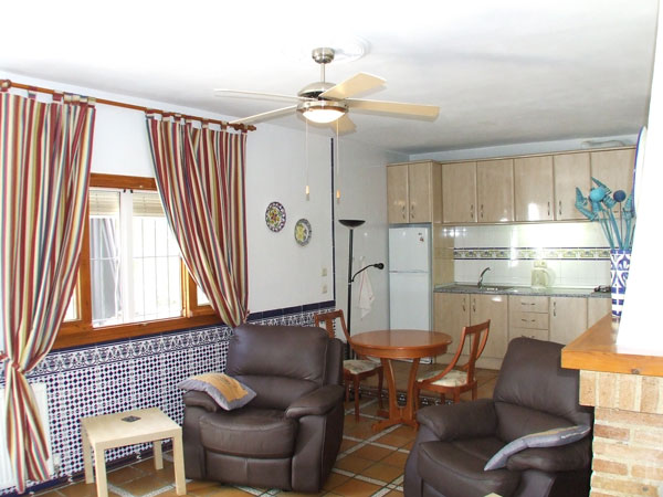 De estilo andaluz tradicional y unos 45 metros cuadrados, tiene un amplio dormitorio con un armario y una cómoda. El baño tiene una ducha corrida, WC y lavabo.