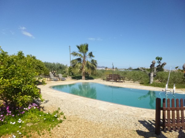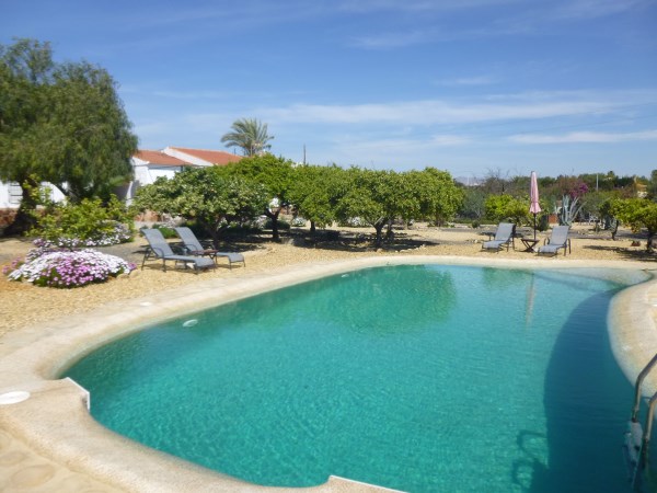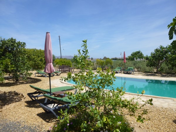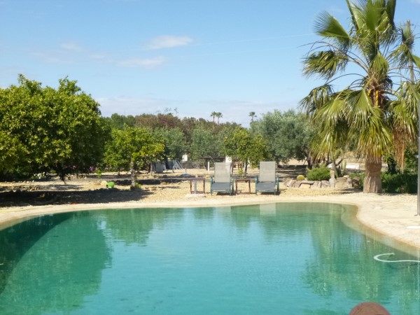 Desde la vivienda hay una hermosa vista de la piscina entre peperinas y naranjos.