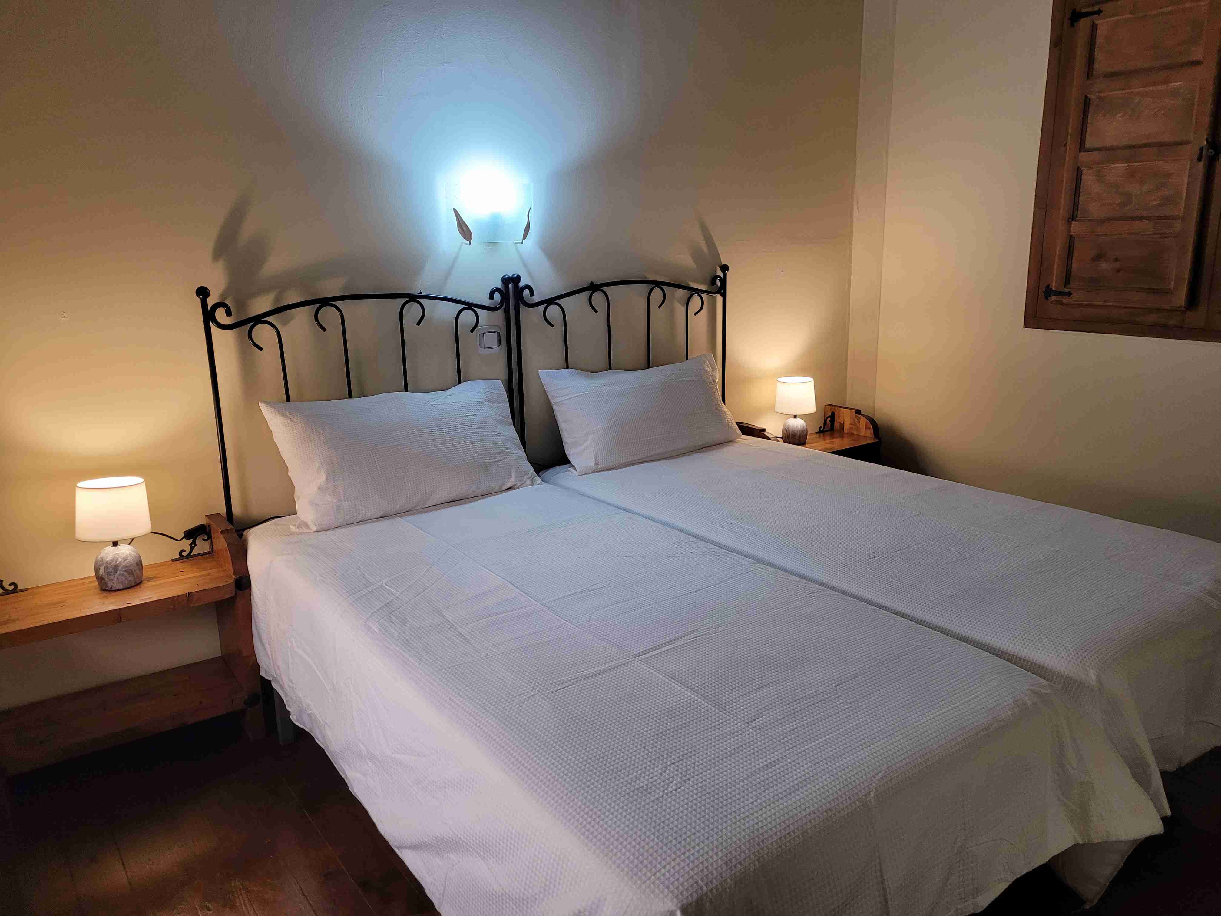Consta de tres habitaciones, una de ellas en planta baja con cama de matriminio, y dos en planta piso con dos camas individuales cada una, un cuarto de baño, estar comedor, cocina completamente equipada, terraza con muebles de exterior y barbacoa, y en definitiva todo lo necesario para unos dias de relax y tranquilidad.