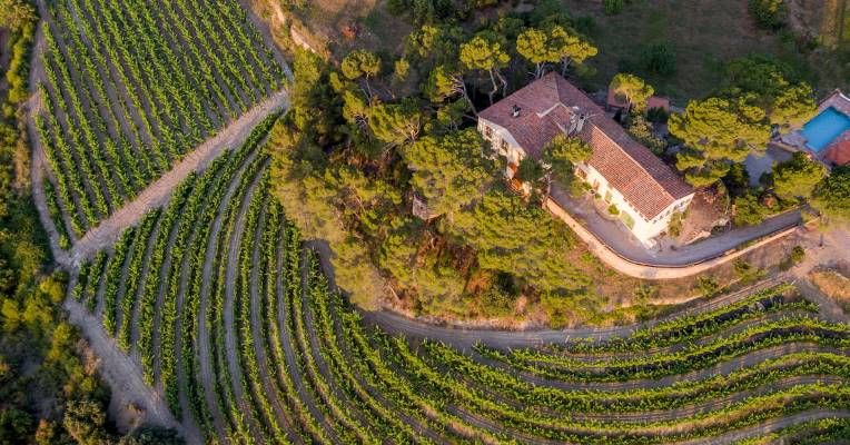 Esplendida Masia de estilo franc?s situada en una ubicaci?n privilegiada en un entorno natural a los pies de la sierra de Miramar, con fant?sticas vistas entre el mar y la monta?a. Situada en una finca privada de 42 hect?reas de bosque, rodeada de vi?edos y con un camino interno privado. La casa de 375 m2 consta de 2 plantas y dispone de 9 habitaciones.