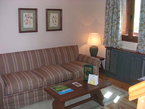Suelos, paredes, vigas y columnas forradas en madera contienen un moderno y confortable mobiliario. Algunas habitaciones poseen hermosas vistas de este bello enclave natural.