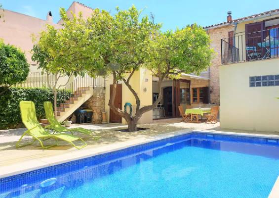 Casa rural en un pueblo c?ntrico de la isla, ideal para vacaciones culturales, gastron?micas y deportivas como el ciclismo o senderismo. Binissalem es un pueblo vin?cola con numerosas bodegas y una amplia oferta de visitas guiadas y talleres de catas que enamorar?n a los amantes del vino. La casa cuenta con amplios espacios con 310 m2 interiores y m?s de 200 de jard?n privado con piscina. La cocina est? especialmente pensada para cocinar en grupo.