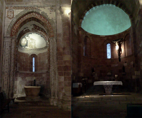 Finalizado el paseo, nos dirigimos al Monasterio e Iglesia de Santa María de Mave, una joya del románico palentino de principios del siglo XIII, construida sobre una iglesia visigoda citada ya en el año 754. La iglesia, de planta basilical con tres naves y triple cabecera, conserva una impresionante cúpula semiesférica sobre el crucero, sostenida por trompas que permiten el paso de planta cuadrada a octogonal. En su interior se proyecta un audiovisual sobre la bóveda del altar, donde se recrean las pinturas que podrían haber decorado el templo desde la época románica hasta el barroco.