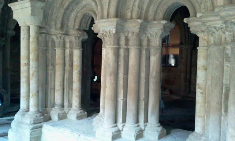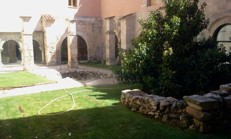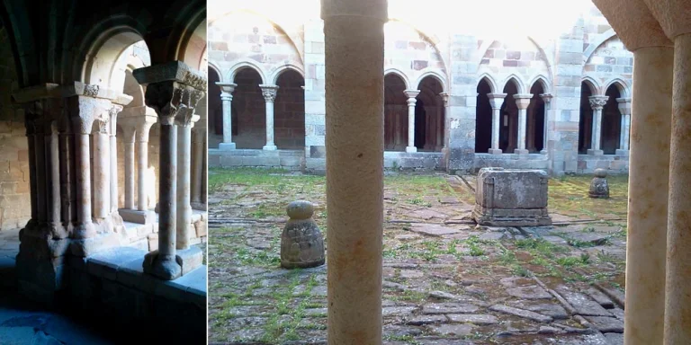 Las habitaciones se encuentran en las antiguas caballerizas, mientras que los monjes vivían en la planta superior, aprovechando el calor generado por los animales. Hoy, este alojamiento rural ofrece experiencias únicas como visitas nocturnas a iglesias románicas iluminadas y recorridos teatralizados por el monasterio. El claustro, declarado Monumento Nacional en 1866, sufrió el expolio de sus capiteles en el siglo XIX, muchos de los cuales se encuentran hoy en el Museo Arqueológico Nacional y en el Fogg Art Museum de Harvard. En sus esquinas aún se aprecia la inclinación de las columnas provocada por el terremoto de Lisboa de 1755.