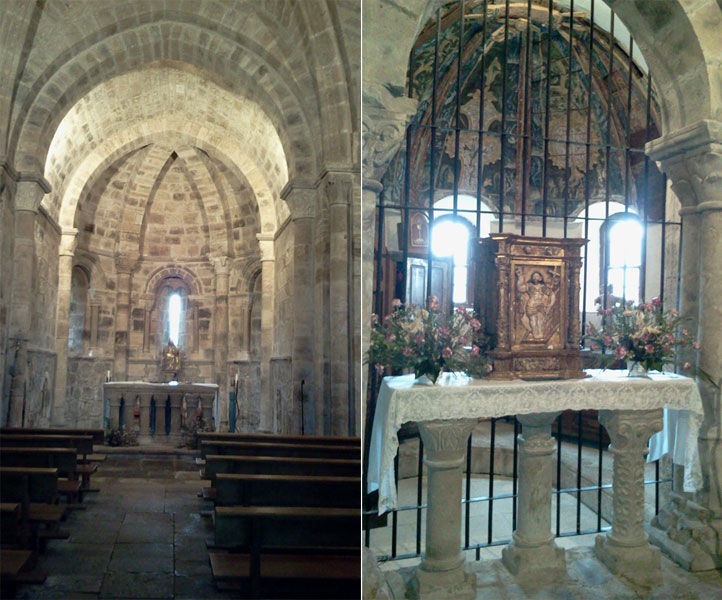 Tras la visita a Herreruela de Castillería, nos dirigimos hacia San Salvador de Cantamuda, cabecera de la comarca de La Pernía. Este pequeño pueblo, rodeado por la imponente Montaña Palentina, conserva una de las joyas del románico castellano: la Colegiata de San Salvador, construida en el siglo XII sobre una iglesia visigoda. Su espadaña de tres cuerpos, su ábside semicircular y sus capiteles decorados con motivos vegetales y animales nos hablan de un pasado monástico de gran relevancia. En su interior, la luz tamizada por los ventanales crea una atmósfera de recogimiento que invita a la contemplación.
